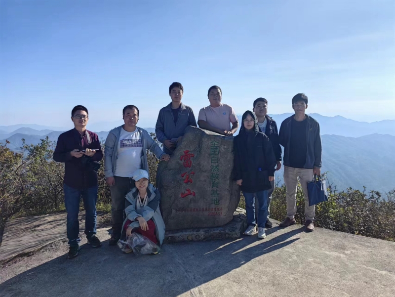 在活动过程中,党支部党员们登上苗岭主峰雷公山顶峰,沿着雷公山保护区科考路线进行考察。途中党员们相互交流,分析自然环境,了解地质、地貌、水文、森林土壤,对植物和动物资源进行拍照记录和标本采集。