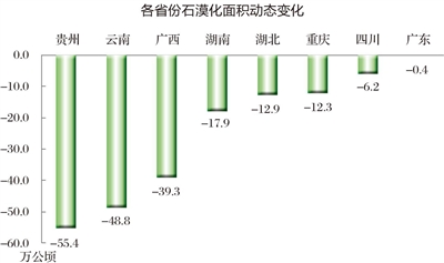 连续3次监测结果显示,石漠化扩展趋势整体得到有效遏制,岩溶地区石漠化土地面积持续减少、危害不断减轻、生态状况稳步好转。