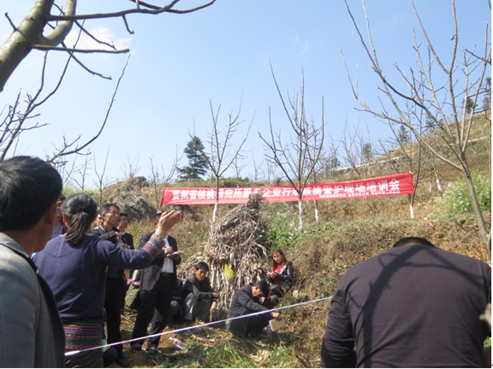 为落实“贵州省核桃研究所服务企业行动”计划,促进农户科技种植核桃助脱贫。2月17日下午,贵州省核桃研究所由侯娜工程师带队,深入六盘水市盘县鸡场坪镇核桃种植基地开展现场培训活动。近50名农村专业合作社骨干及村民闻讯从四面八方赶来学习。 核桃所育种栽培研究团队根据核桃树种特性和盘县气候,向农户们示范了核桃种植、管护、病虫害防治和嫁接技术,培训结束后技术员们还现场答疑解惑,切实帮助农户解决核桃生产过程中的技术难题,受到了农户们的欢迎。连称这种送上田间地头的服务贴心实惠、真心实在。