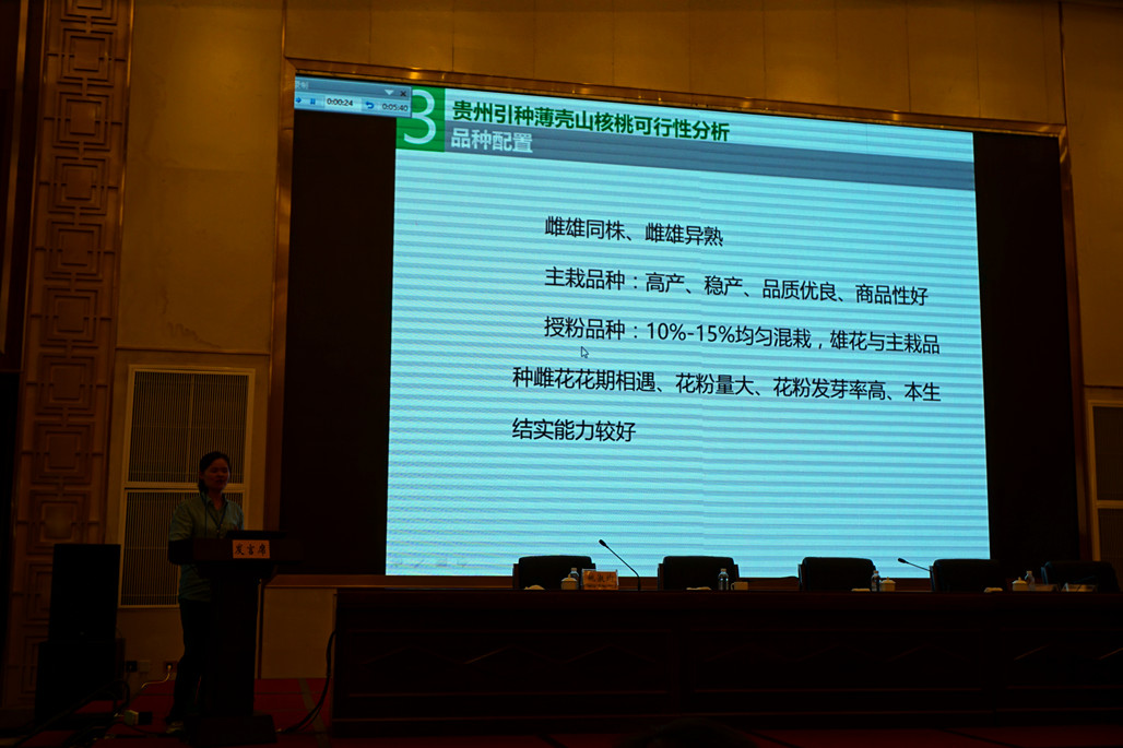 杨小红工程师在会上作了《贵州种植薄壳山核桃可行性分析》的专题讲座,从薄壳山核桃的生物学特性、自然气候条件等方面分析了贵州种植薄壳山核桃的可行性,对我省发展薄壳山核桃提供了科学依据,受到与会人员的赞同。