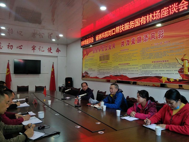 座谈会上,场长陈家洪对官渡国有林场的基本情况、产业项目建设情况以及存在的主要问题做了详细介绍。在听取情况介绍后,双方就林场的产业发展思路、如何把林场的绿水青山变金山银山、林场改革如何在森林康养中发挥重要作用进行了深入讨论。我院团队表示将根据林场需求,下一步拟对林场的森林生态效益价值进行评估及林下中药材发展提出具体建议。